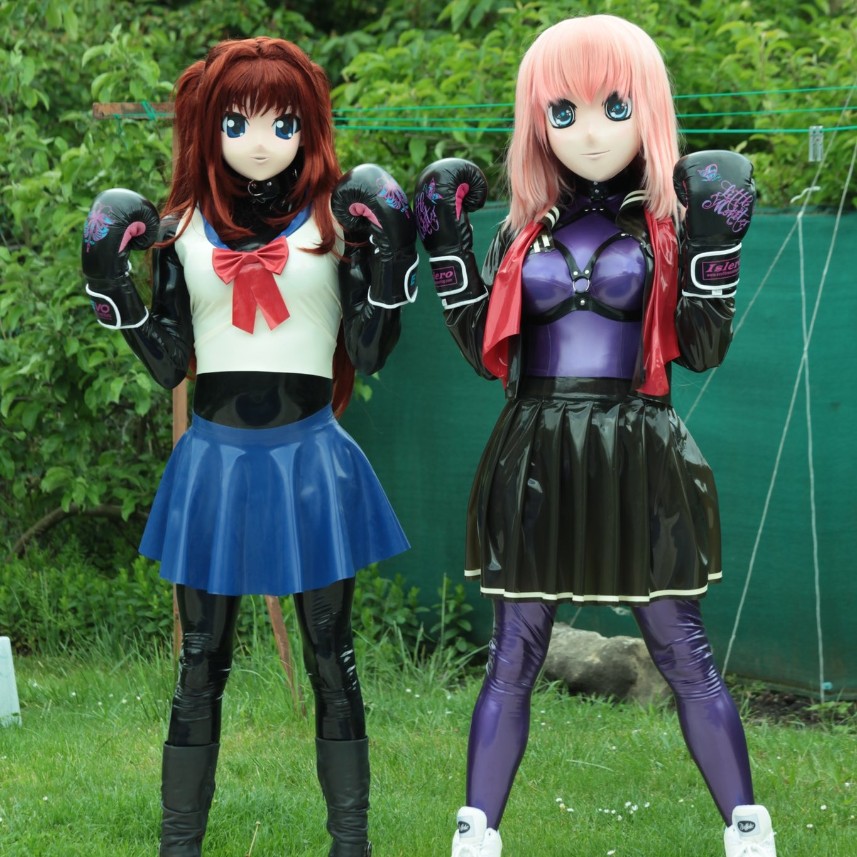 This video captures a young woman, likely in her early twenties, exuding a cool and trendy vibe. She has a radiant smile on her face, which is accentuated by her stylish glasses that lend an intellectual touch to her look. Her hair is styled in the classic “hime cut” or “bangs,” a popular style that adds a chic edge to her personality. She is wearing a blue latex nurse dress, the color of which stands out against the backdrop, drawing the viewer’s attention instantly. Her outfit could be categorized as a costume, indicating that she might be at an event or party, adding a touch of festivity to the image. The latex video appears to be taken indoors, possibly in a well-lit room with a teal-colored background. The foreground is dominated by shades of pink, possibly due to the lighting or her makeup, which is subtle yet effective. The overall color palette of the shiny video is vibrant, with the accent color being a shade of blue, likely matching her dress. The woman’s persona, combined with the aesthetic elements of the picture, creates a visually appealing image that is both engaging and captivating.